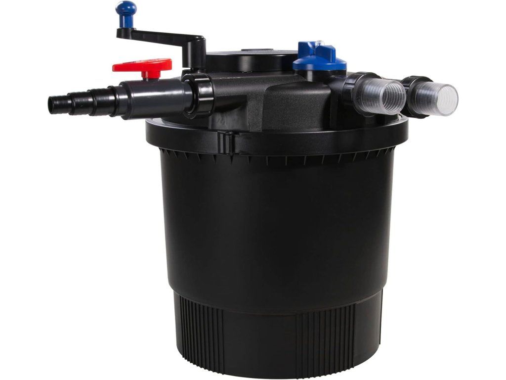 Veškerá elektroinstalace a funkční prvky jsou uzavřené a tak můžete filtr bez problému schovat do země vedle jezírka pod kámen.