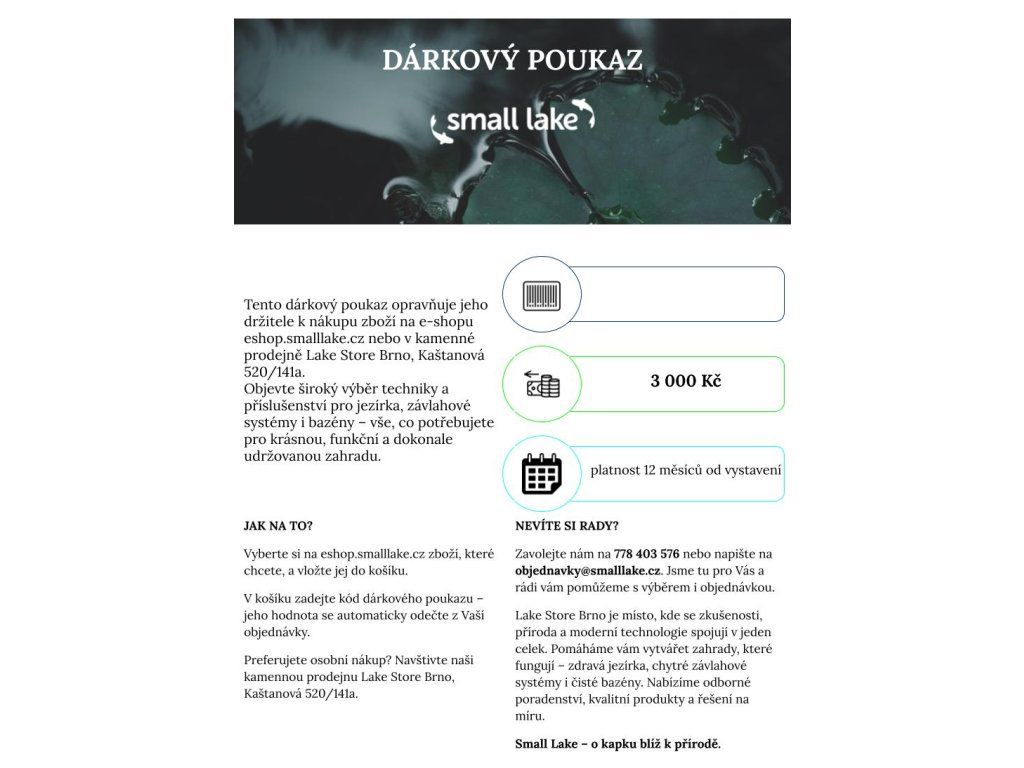 Poukaz lze uplatnit jak v našem e-shopu, tak i v kamenné prodejně v Brně, takže dává maximální svobodu výběru.