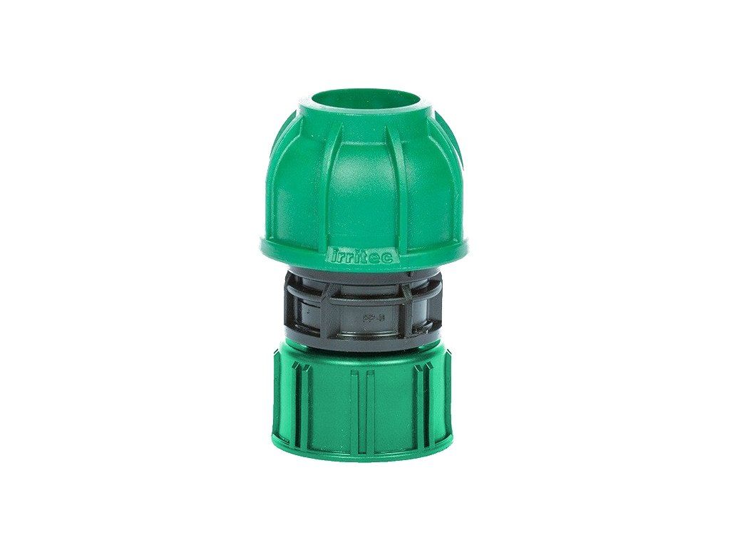 IRRITEC PE přechodka s převlečnou maticí 25 mm × 1" je mechanická tvarovka s jednou převlečnou maticí, navržená pro sestavení lehce rozebíratelného připojení mezi PE potrubím 25 mm a elektromagnetickým ventilem 1" s vnějším připojovacím závitem.