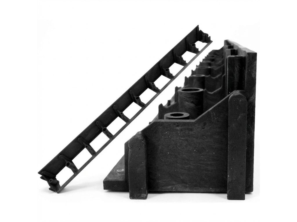 Obrubník je vyroben z polypropylenu, který je známý vysokou odolností a pevností při nízké hmotnosti. To znamená snadnou manipulaci při montáži, ale zároveň stabilní výsledek po usazení. Kotvení se provádí pomocí hřebů (nejsou součástí, pokud není uvedeno jinak), obrubníky se mezi sebou propojují zámkem, čímž vzniká souvislá linie.
