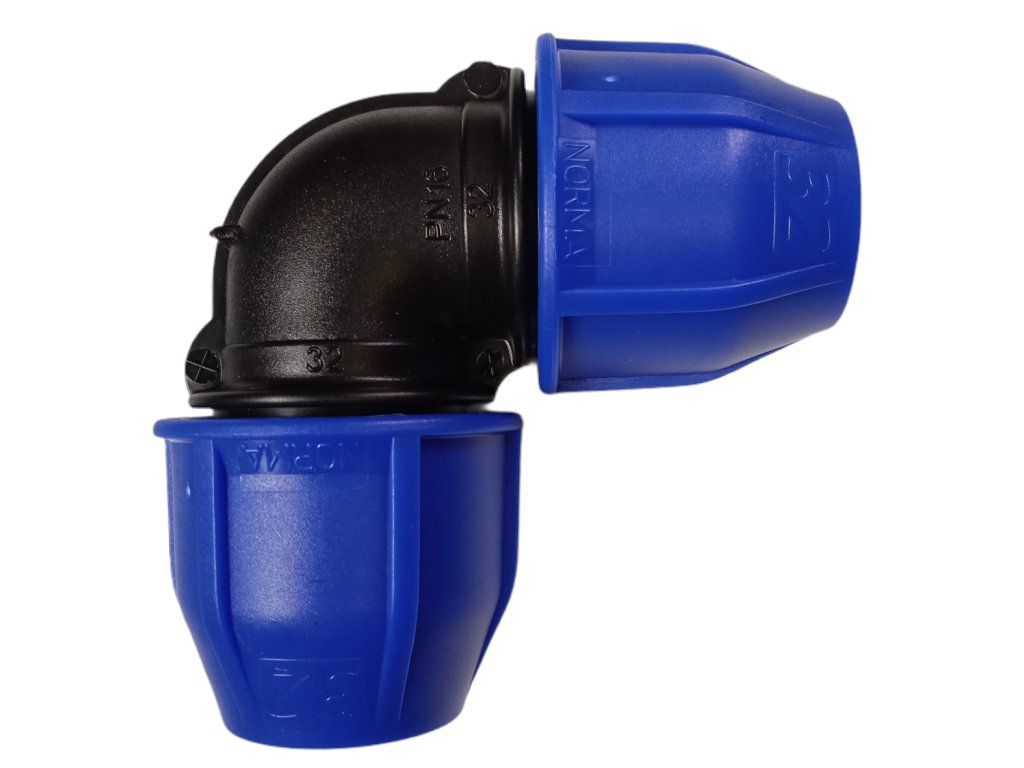 PE koleno 32 mm je mechanická tvarovka určená pro spojování PE potrubí a vytvoření kolena (změny směru vedení) v rozvodech vody a závlahových systémech. Je navržené pro potrubí z nízkohustotního polyethylenu (PE‑LD) a středněhustotního polyethylenu (PE‑MD) v jednovrstvém i dvouvrstvém provedení (PE‑MD / PE‑LLD). U systémů, kde nevznikají tlakové rázy, lze koleno použít i na flexibilní PE‑HD (PE 80).