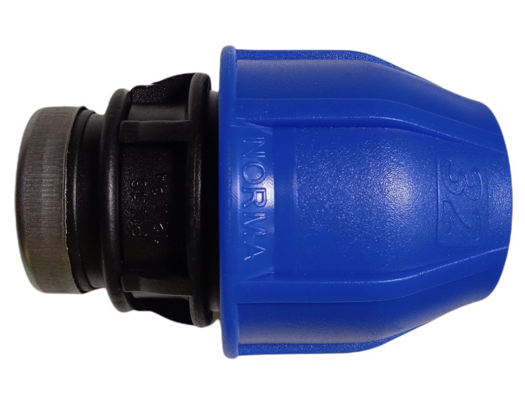 Přechodka PE 32 × 3/4" s vnitřním závitem je mechanická (kompresní) tvarovka určená pro rychlé a bezpečné napojení polyetylenového potrubí na závitové armatury a komponenty. Slouží jako přímý přechod z potrubí s vnějším průměrem 32 mm na standardní závit 3/4" vnitřní pro připojení ventilů, filtrů, rozdělovačů, kohoutů a dalších prvků se závitovým výstupem.