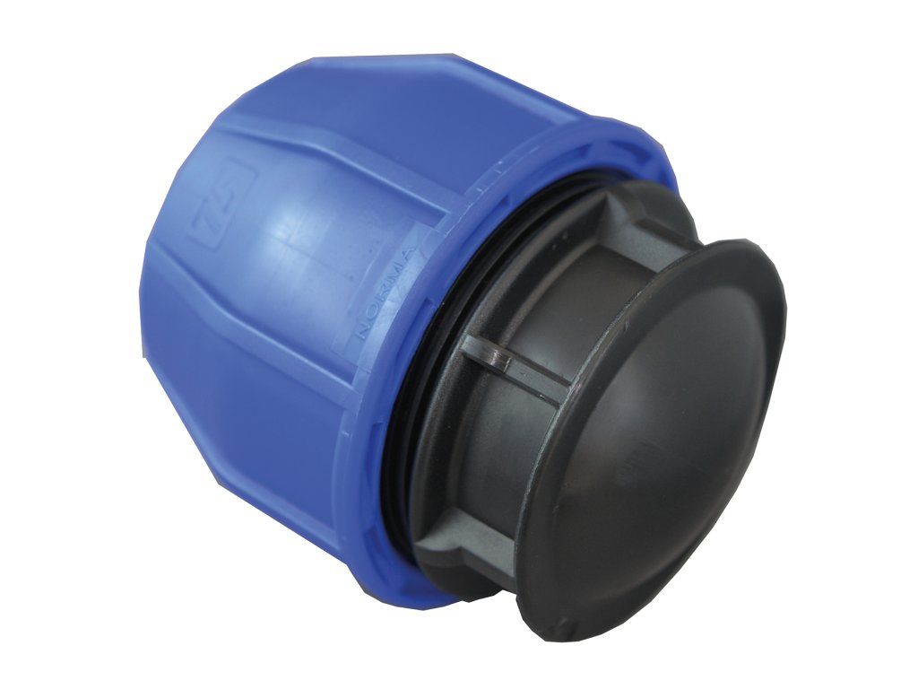 Záslepka je vhodná pro potrubní rozvody ze středněhustotního PE‑MD (v jednovrstvém i dvouvrstvém provedení PE‑MD/PE‑LLD) a pro PE‑LD. U systémů bez tlakových rázů ji lze použít i na flexibilní PE‑HD (PE 80). Díky kompresnímu principu spojení není potřeba svařování ani lepení – montáž je jednoduchá, čistá a po dotažení je možné rozvod ihned natlakovat.