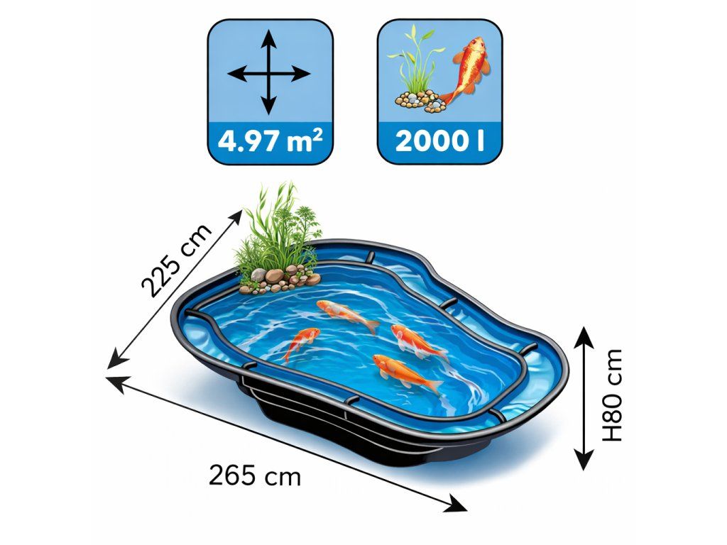 Snadná instalace: díky svému tvaru a provedení je jezírko snadno instalovatelné a rychle vytvoří estetický vodní prvek ve vaší zahradě.