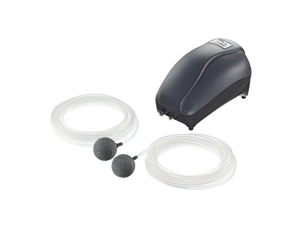 Kompletní provzdušňovací set Pontec PondoAir Set 200 určený pro spolehlivé dodávání kyslíku do zahradních jezírek, nádrží i akvárií. Vzduchovací kompresor s výkonem 200 l/h a příkonem 4 W zajistí optimální okysličení vody až do hloubky 1,3 m. Je vhodný pro celoroční provoz – v zimě pomáhá udržet nezamrzlé místo na hladině.