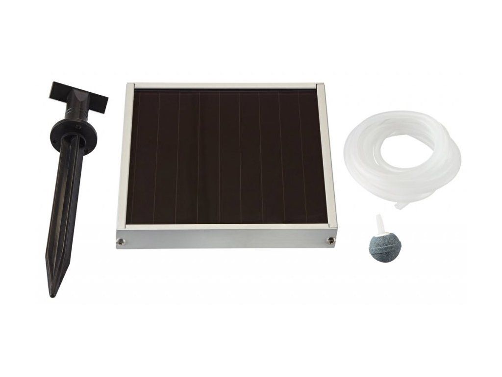 Sada obsahuje vzduchovací kámen, který vytváří bubliny obohacující vodu kyslíkem. Při dostatečném slunečním svitu je čerpadlo napájeno přímo ze solárního panelu o výkonu 1 W. V případě nedostatku slunečního záření se automaticky přepne na vestavěnou lithiovou baterii (3,7 V - 2000 mAh), což umožňuje provoz i za soumraku nebo v noci.