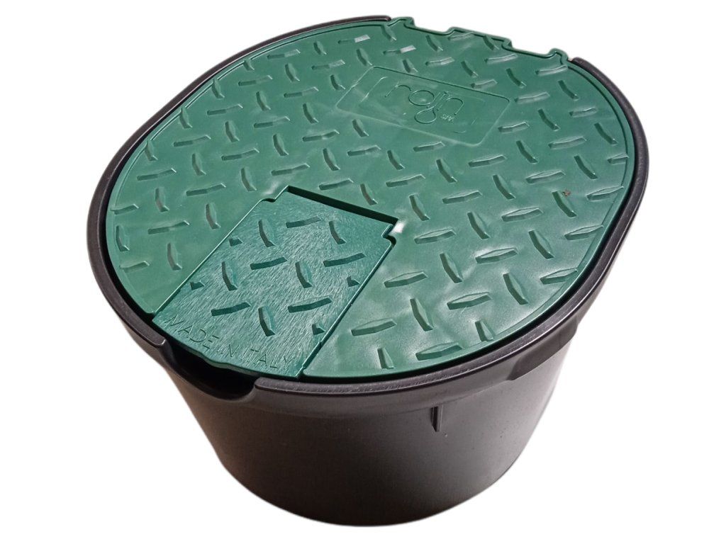 Materiál šachty: 100% polypropylen, víko zelené (méně viditelné v trávníku)