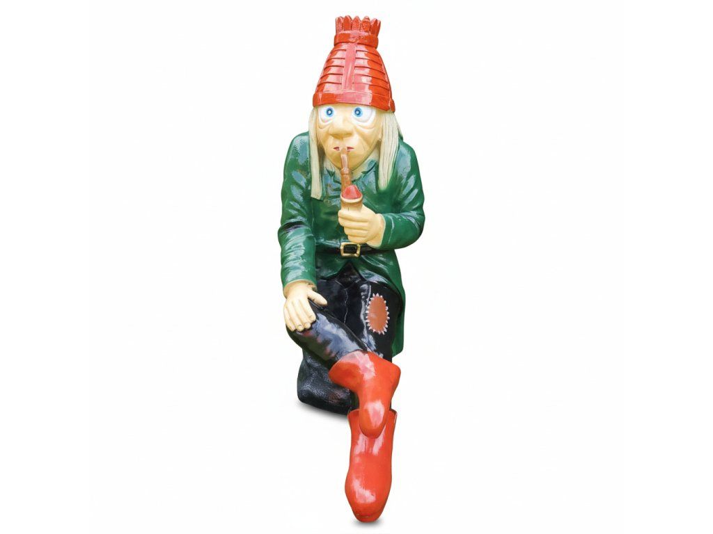 Vodník - velký je jedinečná zahradní dekorace, která přináší kousek tradiční české kultury přímo do vaší zahrady. Tato detailně zpracovaná figura vodníka, inspirovaná klasickým "ladovským" stylem, zobrazuje vodníka s fajfkou, pohodlně sedícího na kameni.